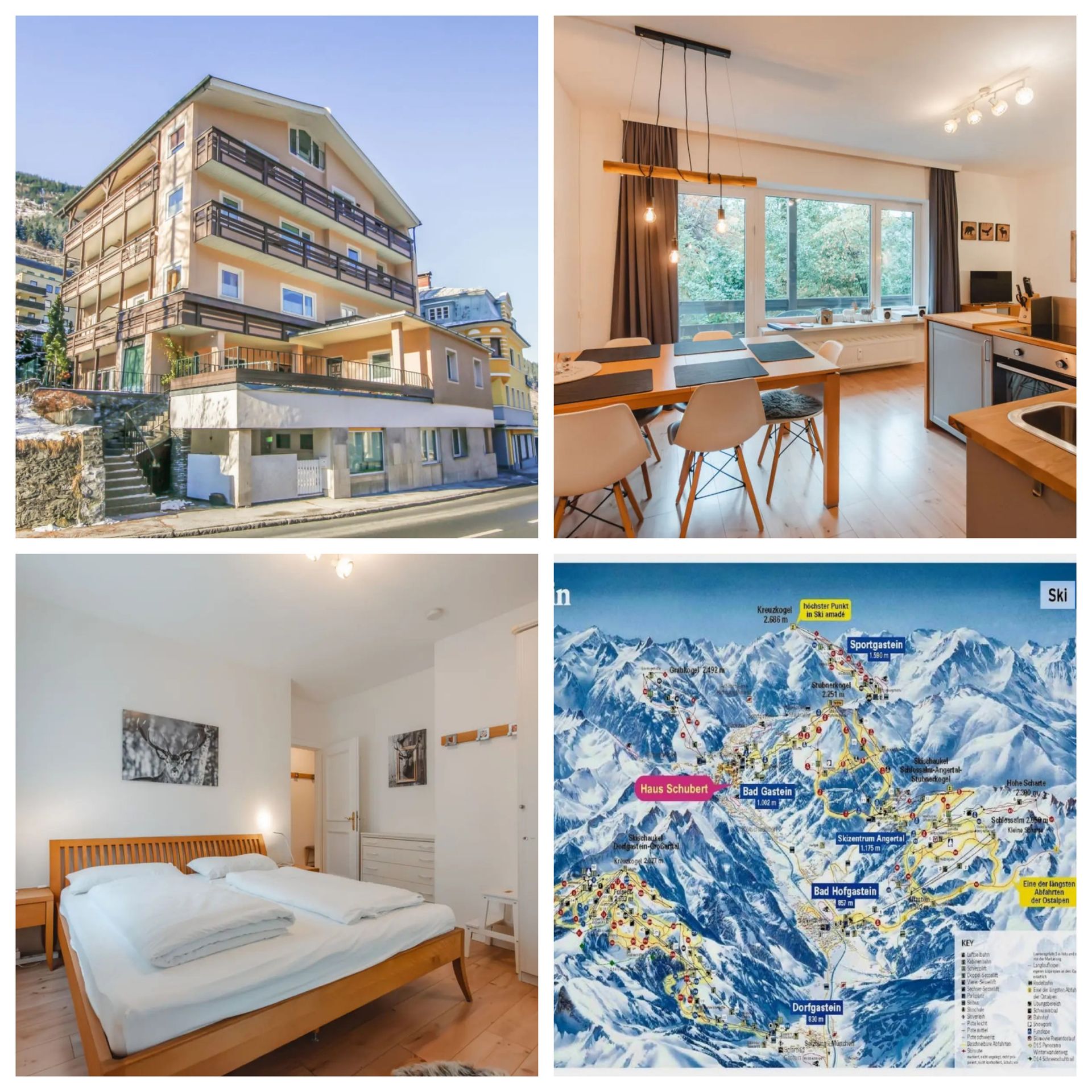 In dem Appartementhaus verteilen sich die Wohnungen auf vier Stockwerke. Es liegt im Ortszentrum von Bad Gastein, ca. 900 m vom Skigebiet. Geschäfte und Restaurants befinden sich in unmittelbarer Nähe. Das Zentrum ist zu Fuß in 5 Minuten erreichbar.
